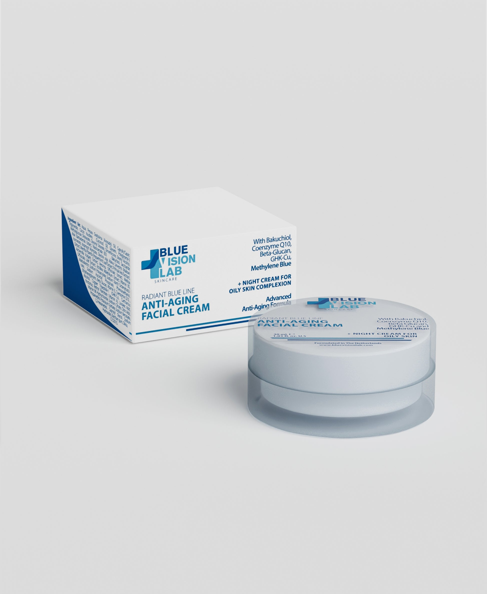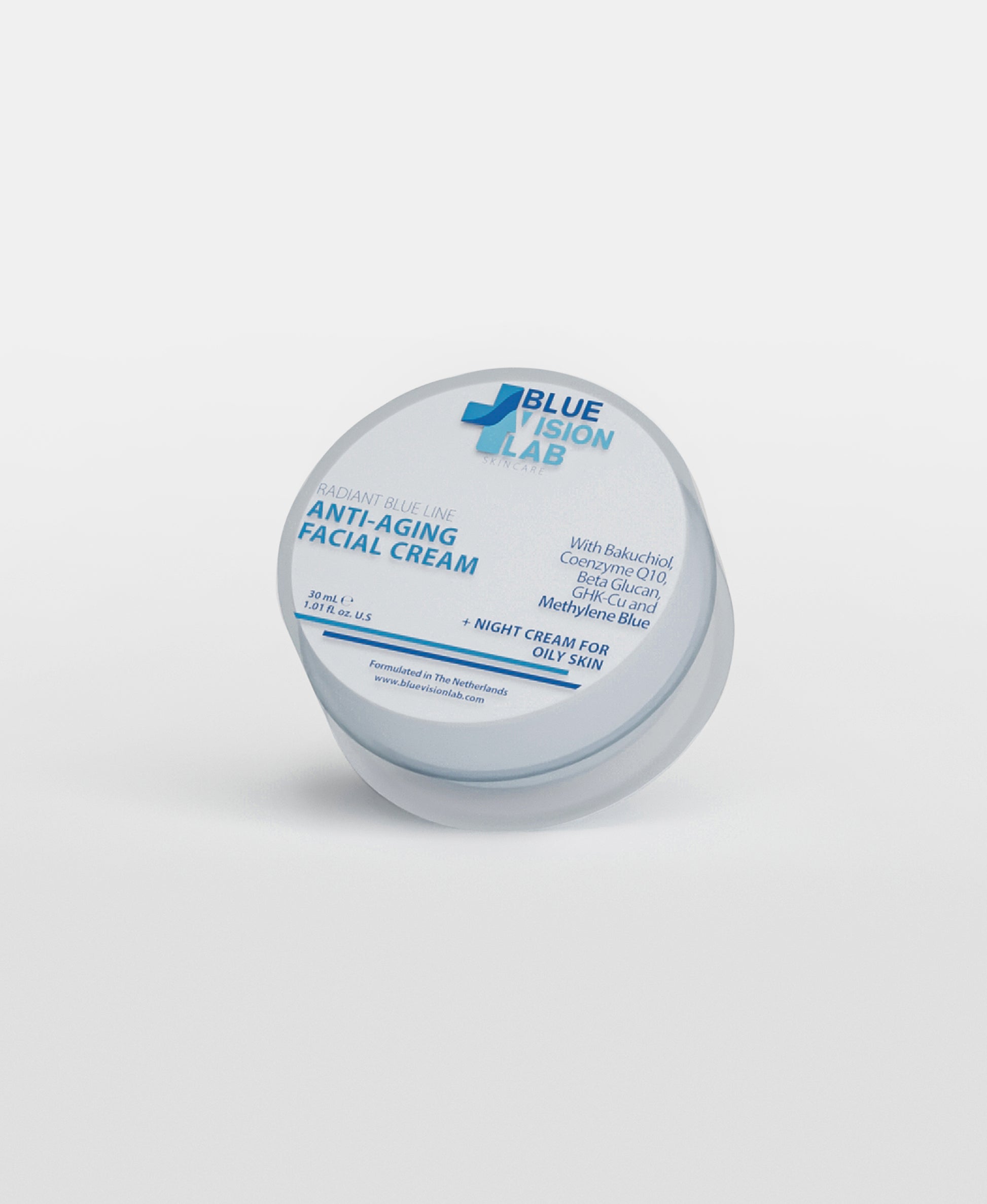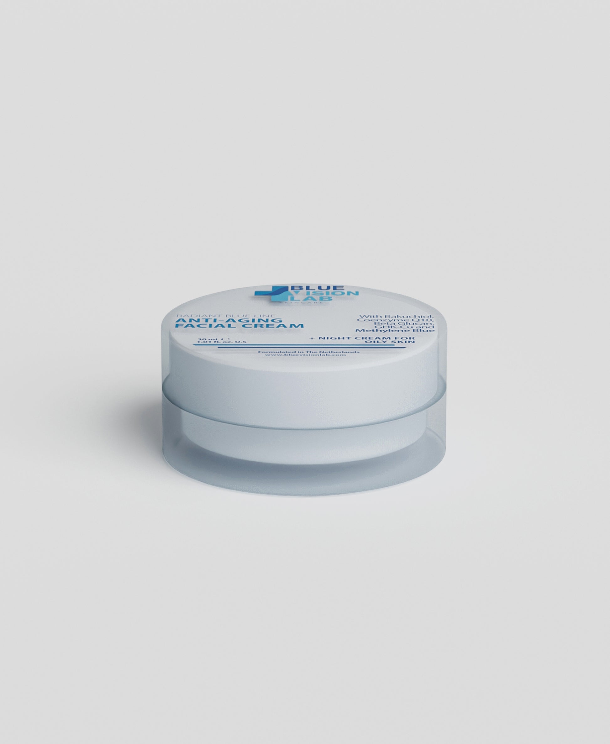Experience next-level skincare with Blue Vision Lab™ Night Cream for Oily Skin, precisely formulated to keep your complexion balanced, shine-free, and revitalized. Powered by Methylene Blue, an advanced antioxidant that targets excess oil and reduces oxidative stress, this cream works alongside Sytenol A, ReguSeb, Pentavitin, and GHK-Cu to deliver lasting hydration, minimize pores, and fight signs of aging—all while you sleep.