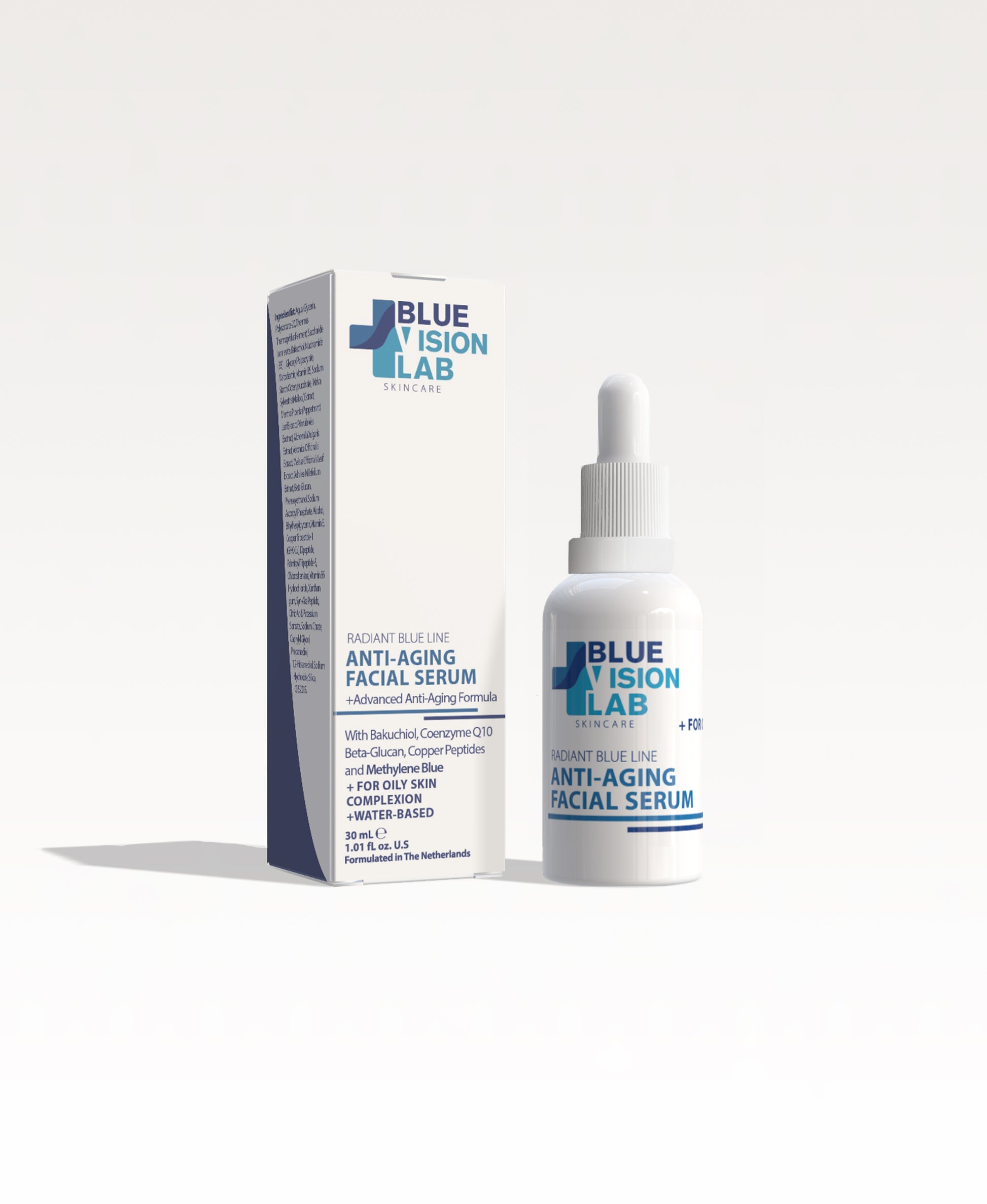 Experience next-level skincare with Blue Vision Lab™ Face Serum for Oily Skin, a breakthrough formula powered by Methylene Blue—the future of antioxidant defense. This lightweight serum blends Pentavitin, Beta Glucan, and ReguSeb for intense, non-greasy moisture while balancing sebum production and refining pores. Enhanced with Syn-Ake, Syn-Coll, and Copper Tripeptide-1, it visibly smooths fine lines, boosts collagen, and brightens uneven tone, delivering a clear, shine-free complexion.